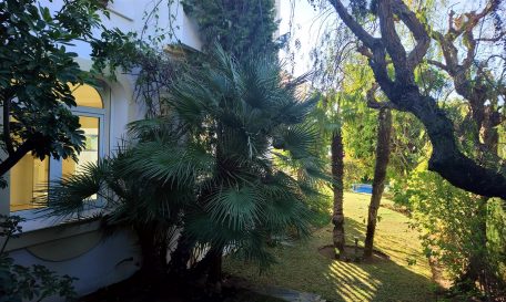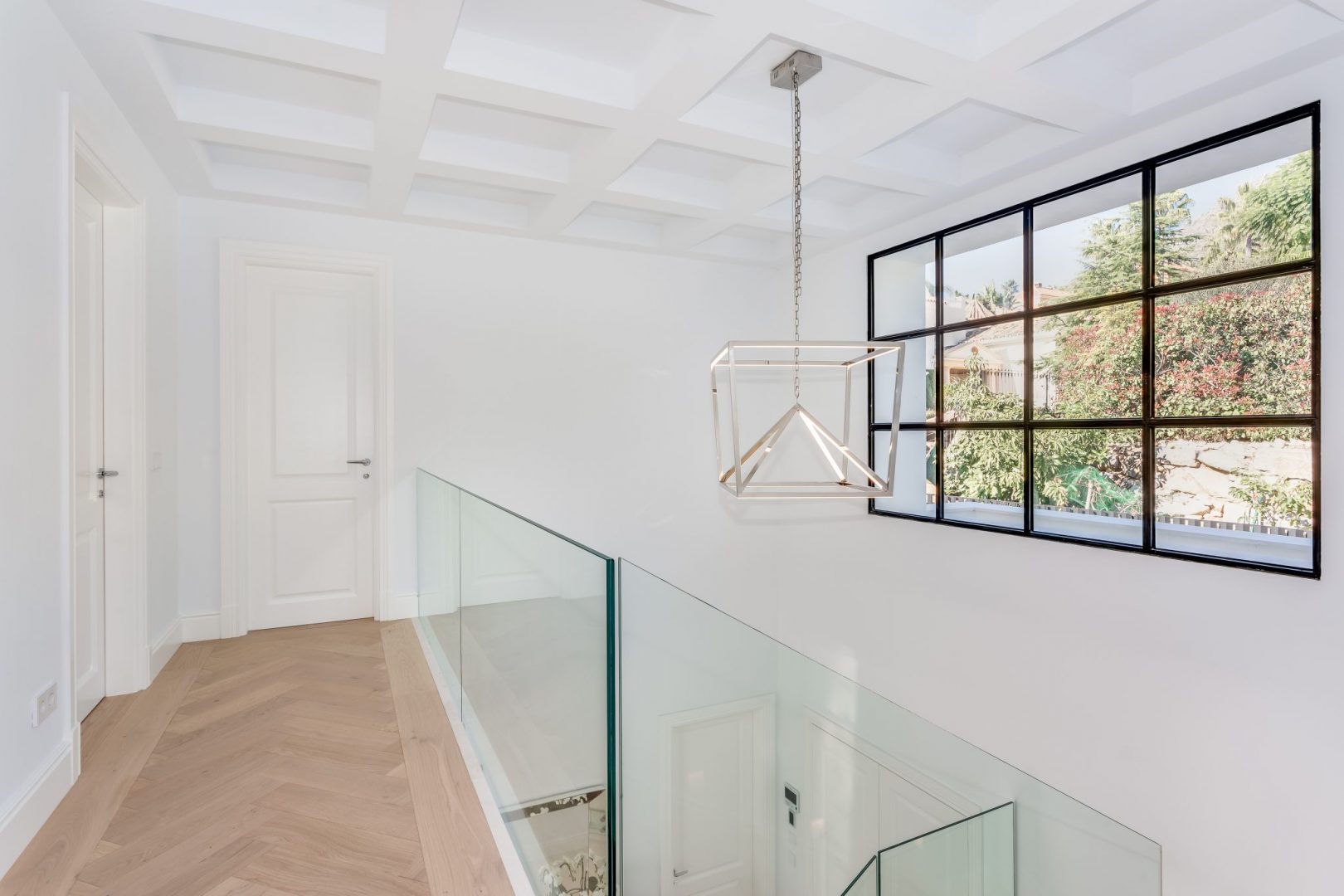Built to high specifications and recently renovated, eco-friendly house of 899 m² set on 1.233 m² plot comprises 3 floors with a large reception area with sliding doors opens out to a terrace with wonderful views, 6 bedrooms with fitted wardrobes, walk-in closet, private terraces and balconies; 7 bathrooms (freestanding bath, double sink, modern showers, etc), 1 guest toilet, laundry and storage room. A dining area is perfect for hosting parties, family and guests. A trendy fully-equipped all-white kitchen with Gaggenau appliances (lovely bonus – free coffee for 1 year!) borrows its high functionality from the chic minimalist design. There is a service elevator to kitchen from 2-car garage.